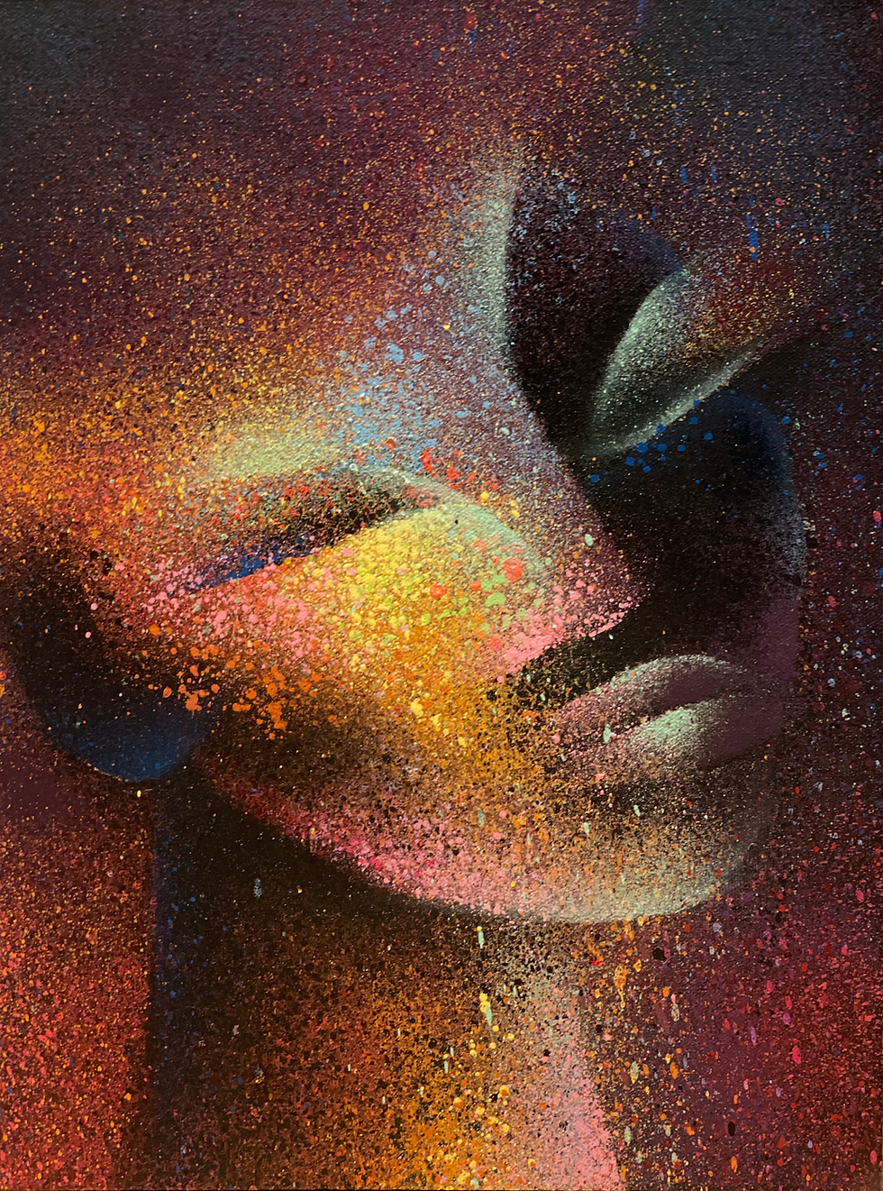 Dans AURA, je ramène sur le format intime de la toile l’énergie urbaine et intuitive de mon art mural, inspirée par la lumière et la vitalité qui nous habitent.